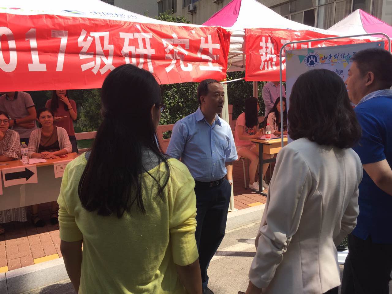 新生入学报道工作于在舜耕校区行政楼南侧有序开展,报到地点悬挂着醒目的迎新条幅“热烈欢迎2138com太阳集团2017级研究生”,迎新报到处按照流程顺序依次张贴了相关指示标志,在迎新入口处,摆放着印有院长寄语和2016届研究生考博就业信息的宣传板。